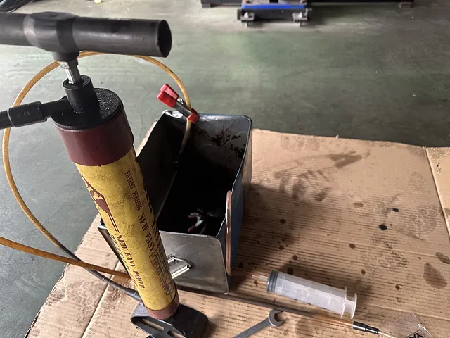 当社では以前輸入したハンドポンプにて診断機で温度を確認しながら注入していきます。