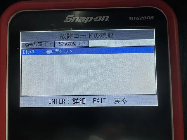 先ずは診断機でエラーを確認すると運転席インフレーターの故障。