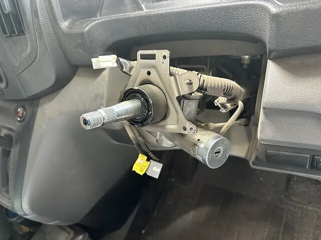 車種、メーカーによって様々ですが今回の車両はステアリングコラム一体式になっていました。