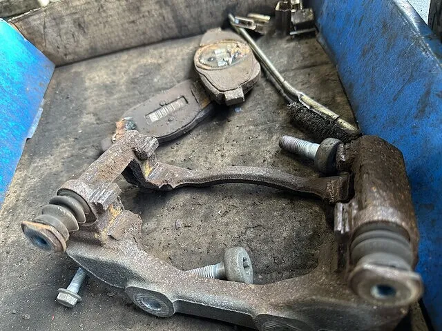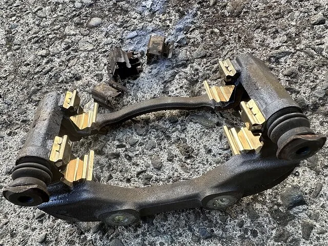 ブレーキキャリパーのマウントの錆が酷く取り外して錆を落とす作業から。