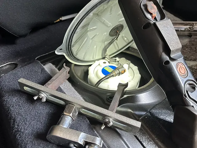 新しい燃料ポンプを組み付けていくのですが、燃料ポンプを固定するねじ込み式の固定具が時にはなかなか位置が合わず難儀するときもあります。